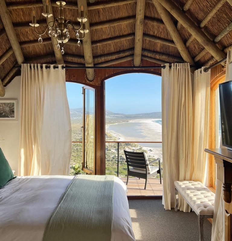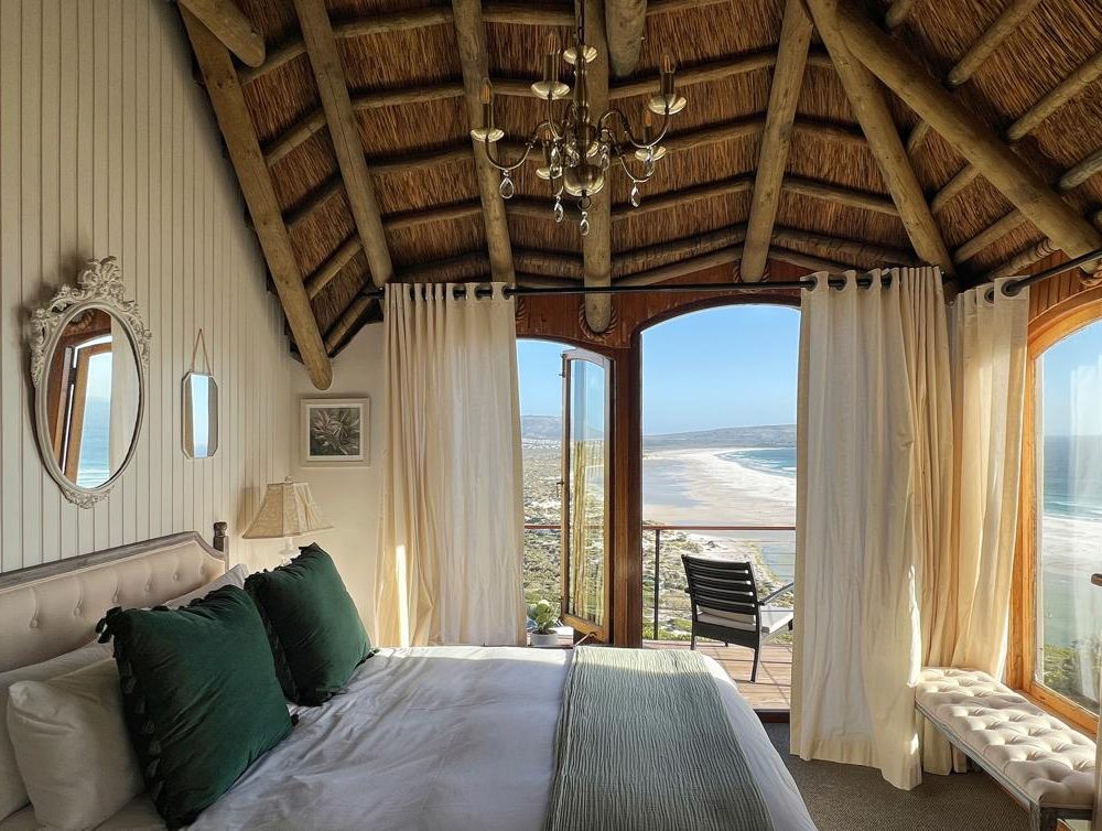 Our Mistral, inspired by a French wind and one of our bigger rooms, delights with a typical Parisian chic interior with ornate detailing.With a 360º perspective of both the sea and mountain views; earthy greens, washed-out-whites and perky pinks assimilate France with the Western Cape.